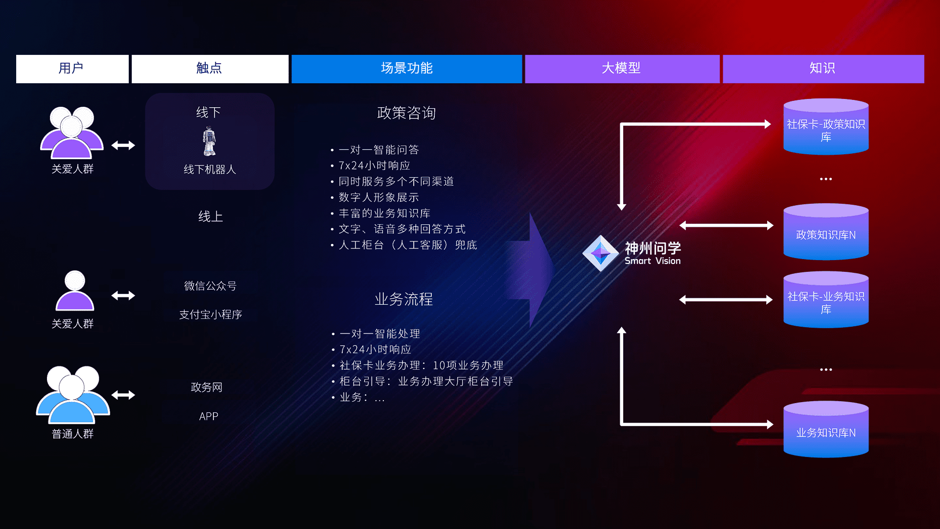 在服务大厅部署客服机器人,,,在线上应用和小程序配置客服数字人,,,724小时为群众解答常规问题,,,,客服机器人无法处理的,,,,转现场人工处理。。